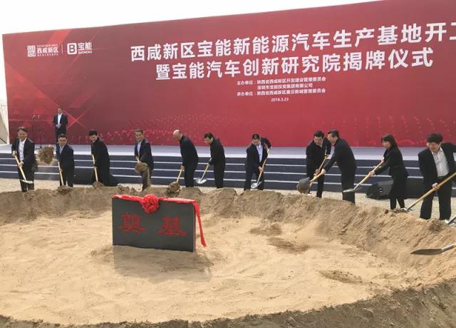 3月23日西咸新區(qū)寶能新能源汽車生產(chǎn)基地開工暨寶能汽車創(chuàng)新研究院揭牌儀式在陜西省西咸新區(qū)秦漢新城舉行。該項(xiàng)目總投資約400億元,規(guī)劃產(chǎn)能100萬輛(其中一期50萬輛)新能源汽車及配套項(xiàng)目,整車和零部件制造產(chǎn)值將超過千億元。這是寶能在新能源汽車產(chǎn)業(yè)的重大布局,也是西咸新區(qū)開工建設(shè)的千億級工業(yè)產(chǎn)業(yè)項(xiàng)目。