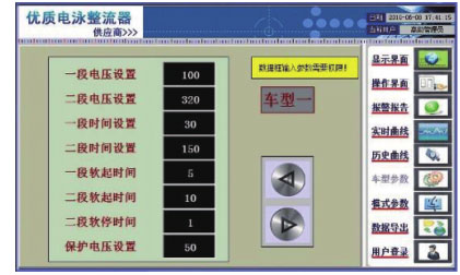 雙系統(tǒng)控制器提供整流變壓器保護(hù)、12 脈波整流橋相控觸發(fā)、人機(jī)操作、網(wǎng)絡(luò)通訊。同時(shí)溫度檢測(cè)元件監(jiān)控著變壓器、電抗器、晶閘管等功率器件,超過(guò)溫度設(shè)定值,設(shè)備報(bào)警動(dòng)作,同時(shí)將故障上傳 PLC 并在觸摸屏上顯示。